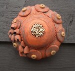 2015Insectenkastje, geinspireerd op zeeanemonen. Rode klei met engobes en oxiden.