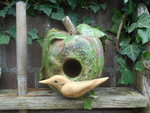 2015Appel vogelhuis....nu iets groter dan het vorige....glazuur en rookstook...houten vogeltje voor de ingang.