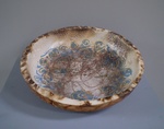 2010Schaal, handgevormd...Bewerkt met glazuren, daarna rookgestookt.