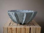 2009Kom in de vorm van een boemerang. Handgevormd en bewerkt met engobes en oxyden.