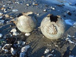 20162 blauwe kommen aan de waterkant. Handvorm, glazuur en rookstook.